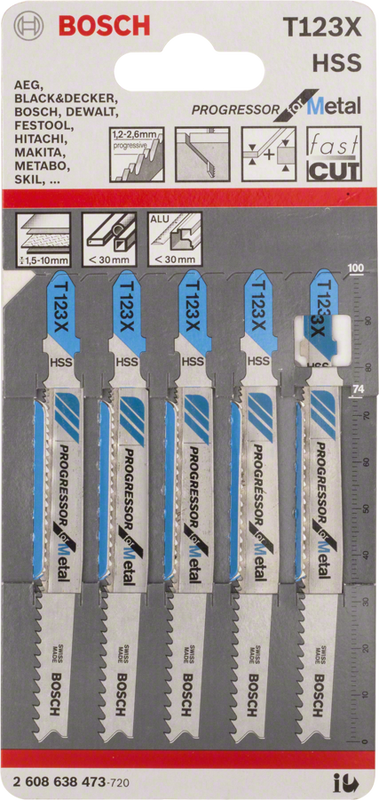 Опис BOSCH Холст для лобзиков PRO Metal Thick and Thin T123XF код товару 3165140128056