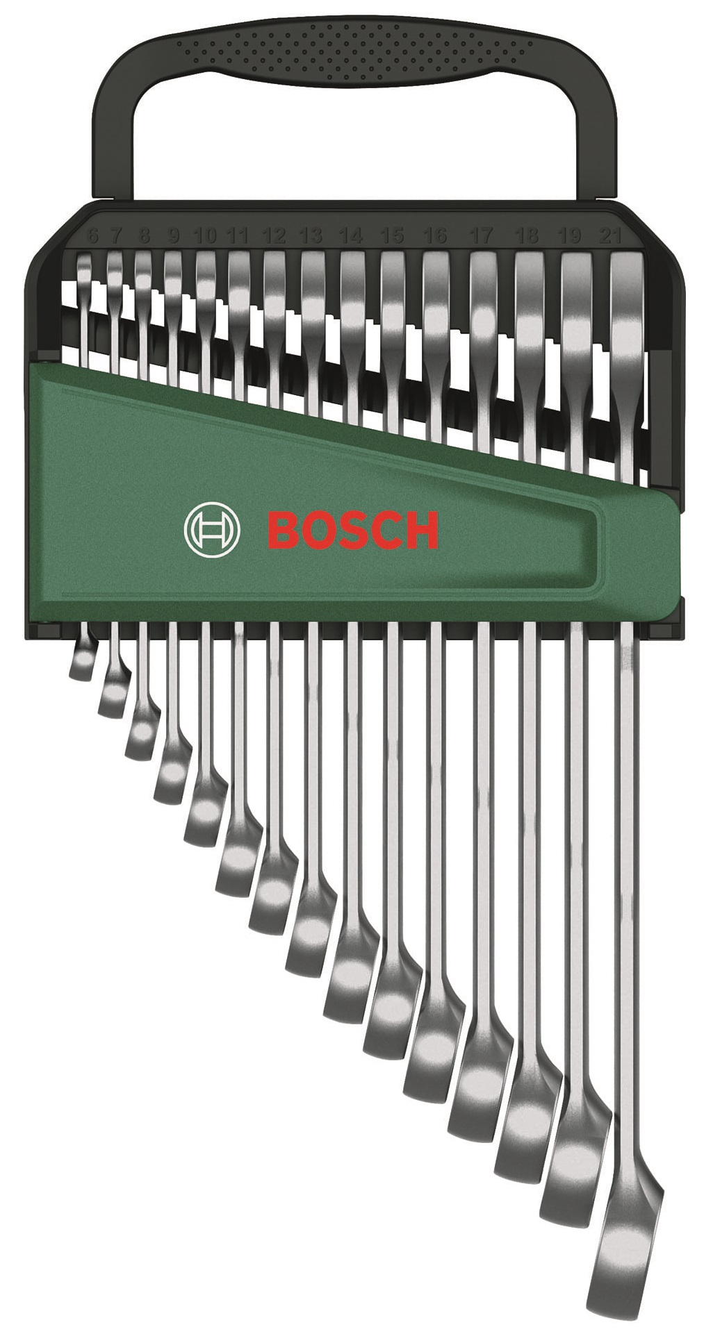 Bosch Ключі гайкові, набір 15шт, комбіновані, 6-21мм, CrV