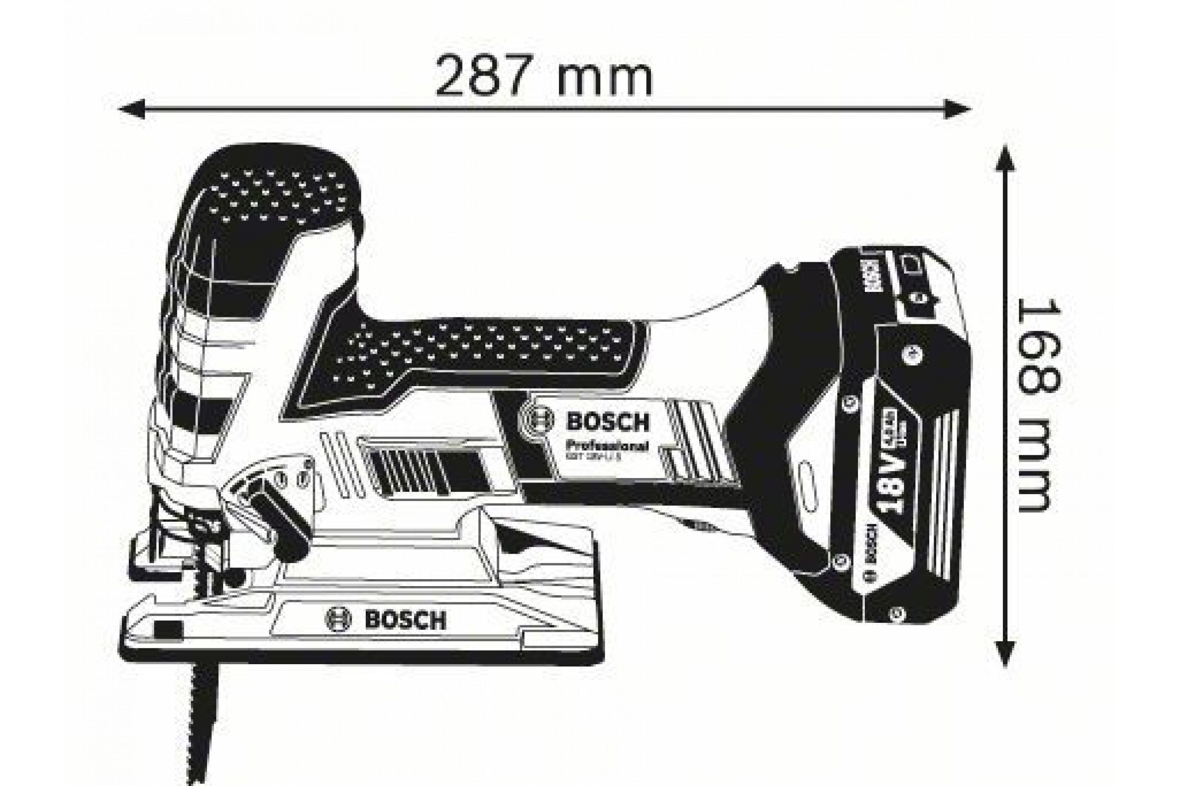 Опис Bosch Лобзик GST 18 V-LI S, акум., 18В, хід 23мм, 2,4кг, Solo код товару 0.601.5A5.100