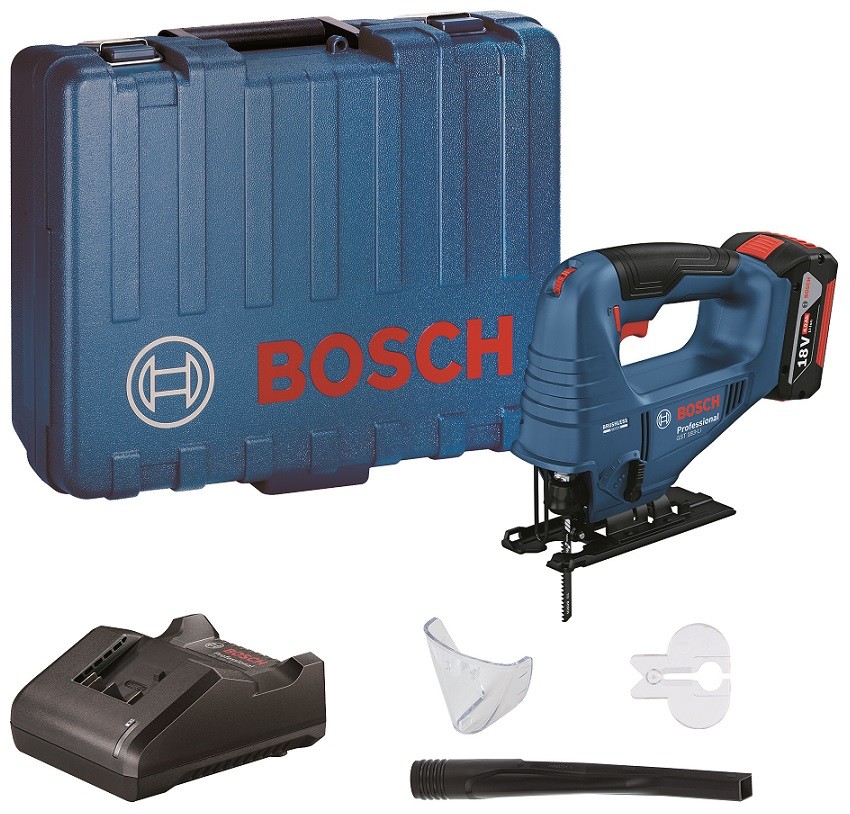 - 1 пильне полотно, захисний кожух, зарядний пристрій, Кейс, акумулятор, захисний кожух від уламків, всмоктувальна насадка