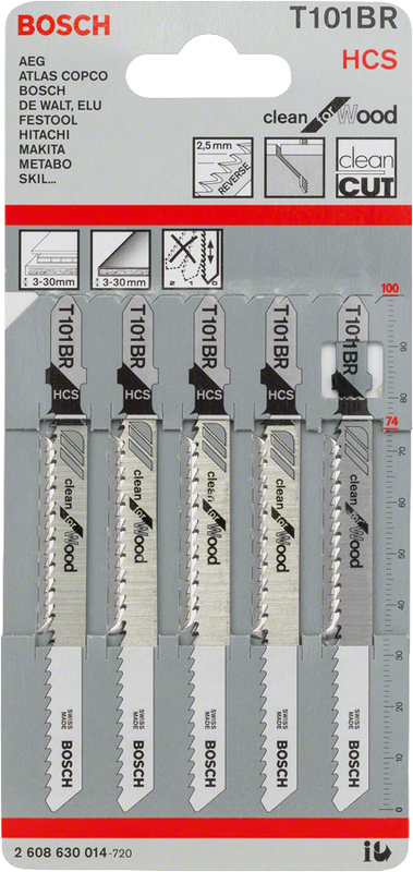Опис BOSCH Полотна для лобзиков T 101 BR Clean for Wood код товару 3165140012454
