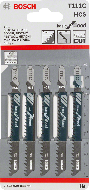 Резка в мягкой древесине – Полотно для лобзиков T 111 C Basic for Wood образует прямые прорези в древесине. Его фрезерованные разведенные зубцы идеально подходят для резки без особых требований. Изготовленное из высокоуглеродистой стали полотно режет мягкую древесину и неабразивные древесные материалы. Благодаря среднему шагу зубцов (3 мм) полотно режет древесные материалы толщиной 4–50 мм. Для использования с лобзиками с системами крепления Т-образных хвостовиков. Подходит для всех лобзиков с Т-образным хвостовиком Полотно для лобзиков T 111 C Basic for Wood образует прямые прорези в древесине – для использования с лобзиками с системами крепления Т-образных хвостовиков. Подходит для всех лобзиков с Т-образным хвостовиком Резка в мягкой древесине и неабразивных древесных материалах. Холст для лобзиков T 111 C Basic for Wood образует прямые прорези в древесине. Фрезерованные разведенные зубцы идеально подходят для резки без особых требований. Полотно из высокоуглеродистой стали режет мягкую древесину и неабразивные древесные материалы. Благодаря среднему шагу зубцов (3 мм) полотно режет толстые древесные материалы толщиной 4–50 мм.