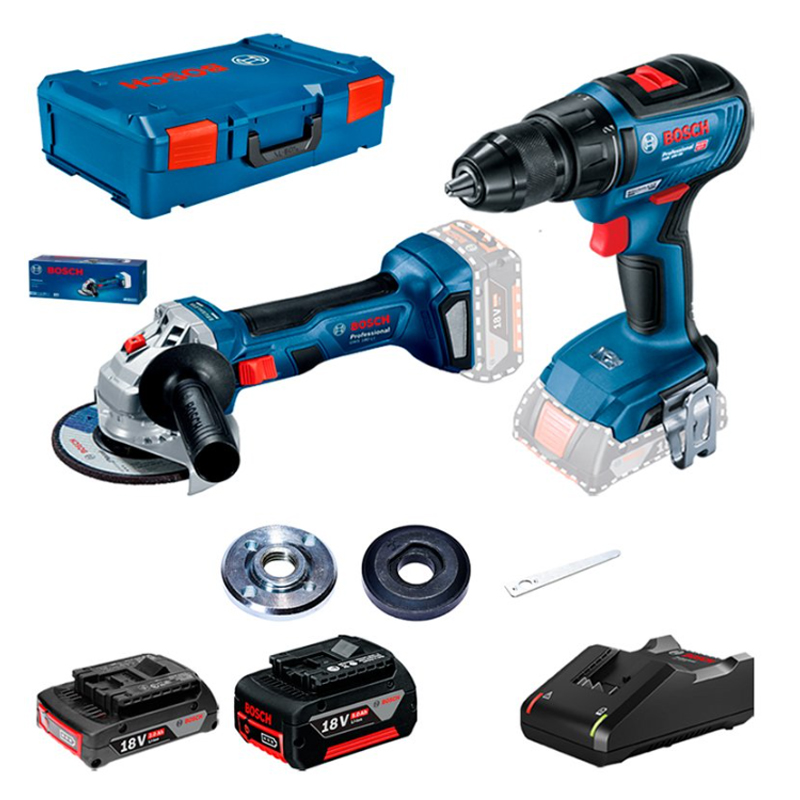 Опис BOSCH Профессиональный набор: аккумуляторная дрель/шуруповерт + аккумуляторная угловая шлифмашина код товару GSR 18V-50 + GWS 180-LI