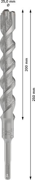 Характеристики Бур по бетону 25 x 200 x 250 мм, SDS Plus 5X BOSCH (2608836649) код товару 2608836649