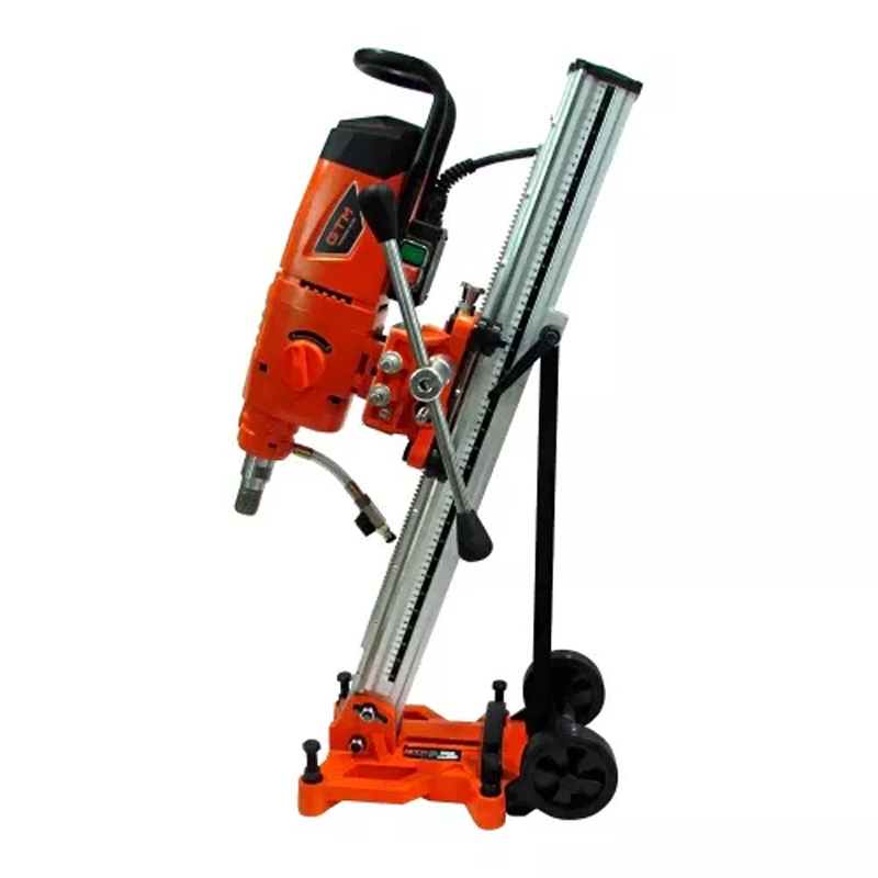 Бурильна установка GTM DK-350/2/45 - електрообладнання для мокрого буріння отворів в бетонних, кам'яних, цегляних і гранітних поверхнях за допомогою алмазних коронок. Представлена модель фіксується на спеціальній стійці (станині), яка входить в стандартну комплектацію. Підключається до системи водяного охолодження і дозволяє проробляти отвори діаметром до 350 мм. Алмазна коронка кріпиться безпосередньо до шпинделя без використання патрона.