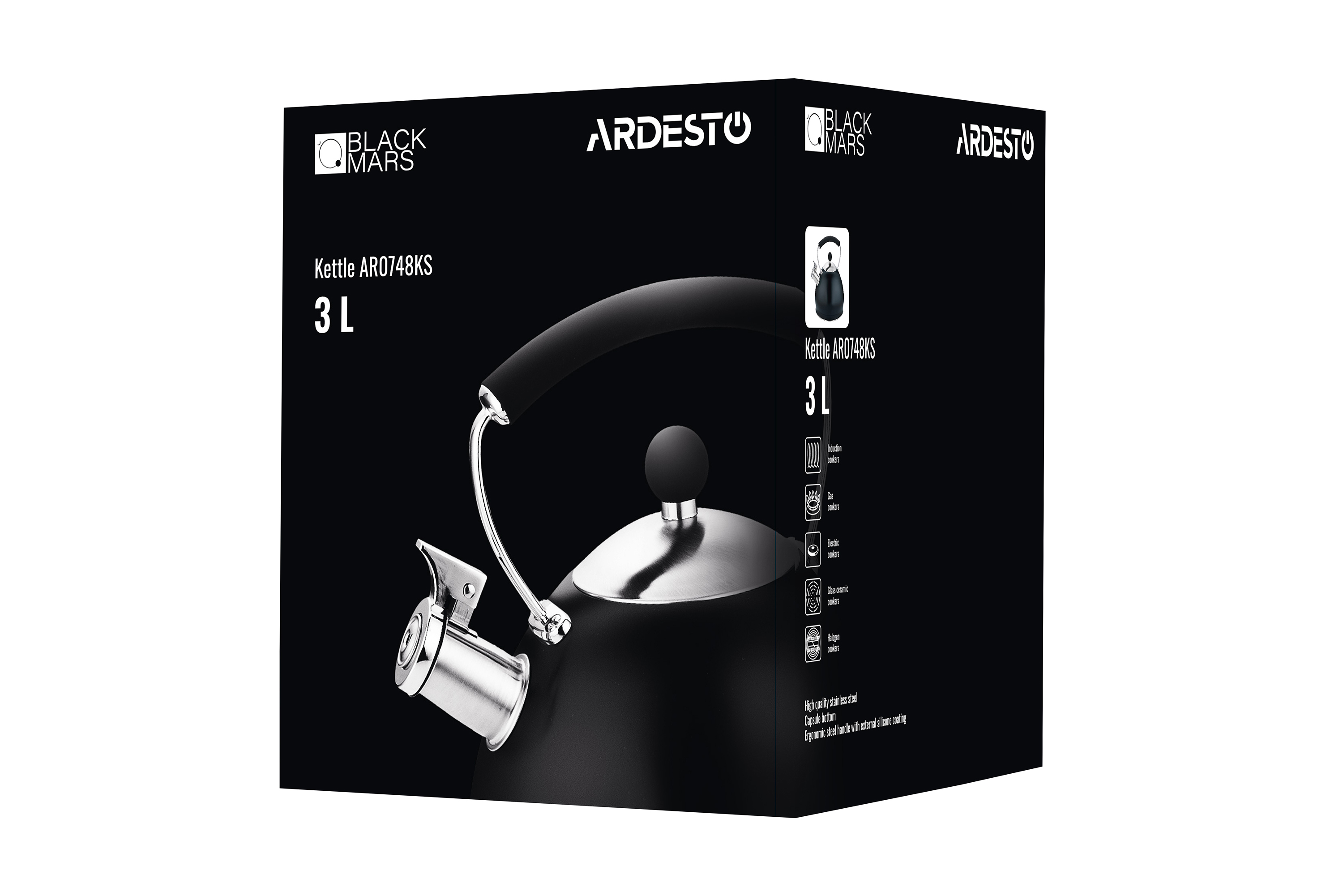 Характеристики Чайник Ardesto Black Mars, 3л, нержавіюча сталь, чорний код товару AR0748KS