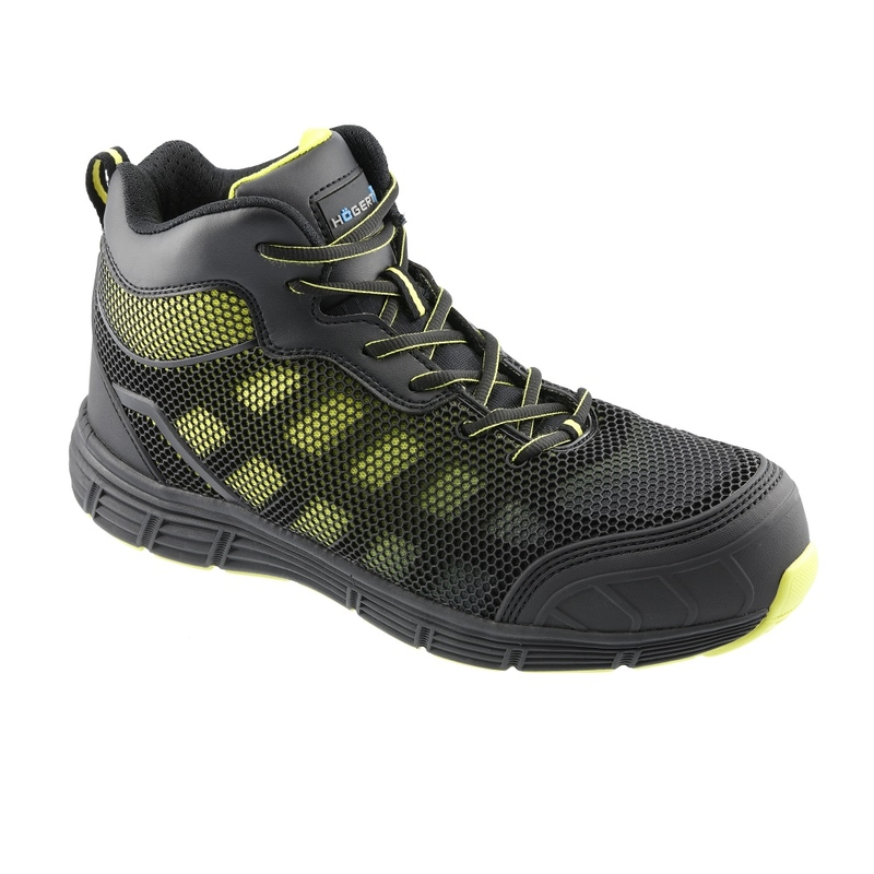 Чоловічі захисні ботильйони DOSSE з верхом до щиколотки. Призначений для захисту стопи від зовнішніх факторів. Відповідає класу безпеки S1P згідно з ISO 20345:2011. Виготовлені з якісного матеріалу КПУ, вони ідеально поєднують модний стильний дизайн спортивного взуття з перевагами захисного взуття. Черевики оснащені композитним підноском і кевларовою устілкою, що дозволяє працювати на землі з гострими предметами, що виступають. Завдяки протиковзкій підошві вони ідеально підходять для ходьби по нерівних та слизьких поверхнях. Взуття рекомендується в логістиці, транспорті, автомобілебудуванні, ремонтних та будівельних роботах.