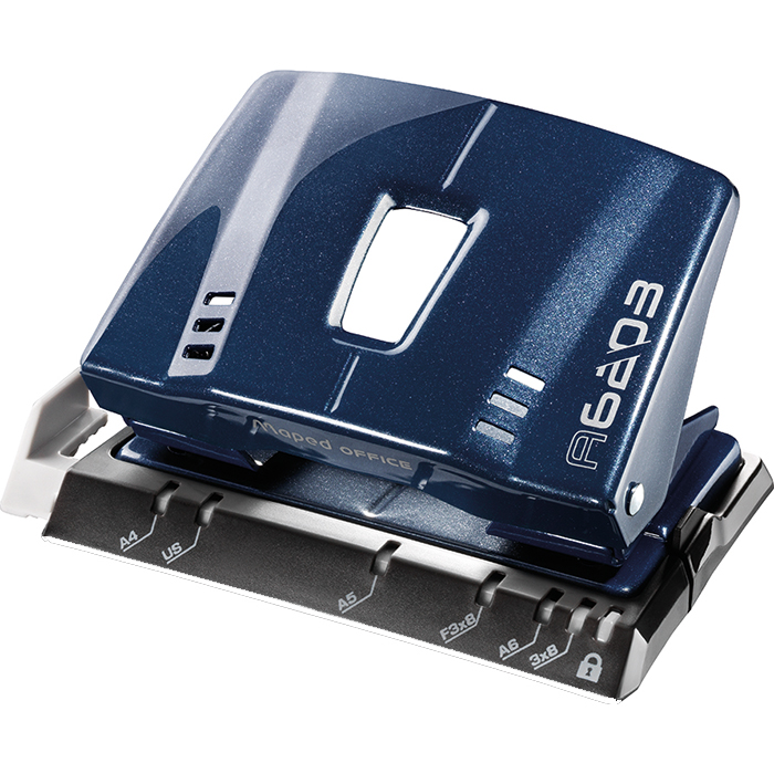 - Дуже легко читається лінійка поділу на формати (основні формати вказані на лінійці з фронтальної сторони діркопробивача).