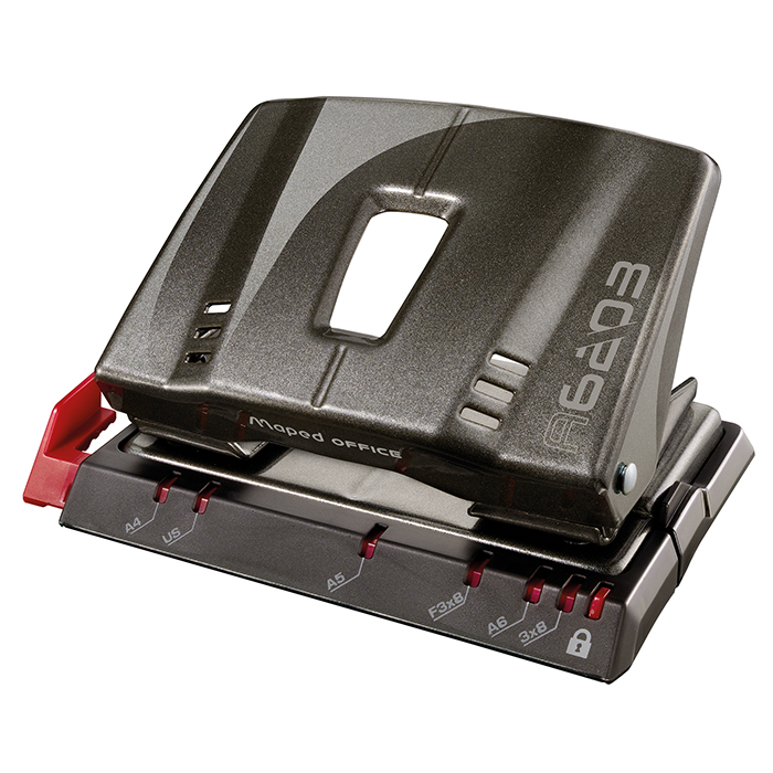 - Дуже легко читається лінійка поділу на формати (основні формати вказані на лінійці з фронтальної сторони діркопробивача).