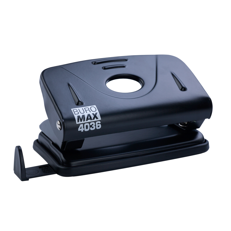 Корпус діркопробивача BUROMAX виготовлений із металу. Підошва оснащена знімним пластиковим контейнером для збору відходів висікання та висувною лінійкою з форматною шкалою, а це точний результат та рівні стоси підшитих документів.Металевий діркопробивач BUROMAX легко та швидко проб'є заявлену кількість аркушів.