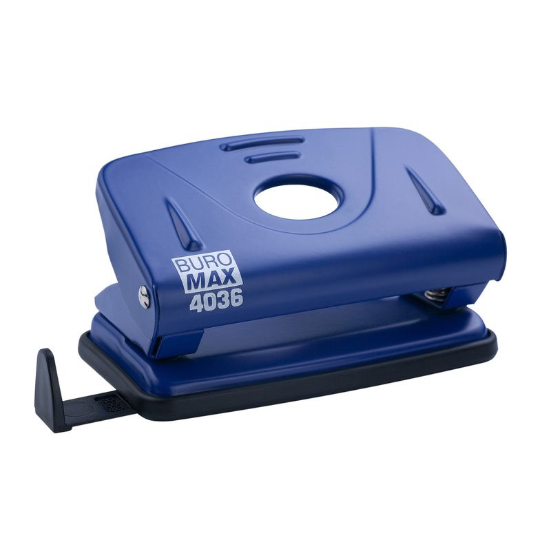 Корпус діркопробивача BUROMAX виготовлений із металу. Підошва оснащена знімним пластиковим контейнером для збору відходів висікання та висувною лінійкою з форматною шкалою, а це точний результат та рівні стоси підшитих документів.Металевий діркопробивач BUROMAX легко та швидко проб'є заявлену кількість аркушів.
