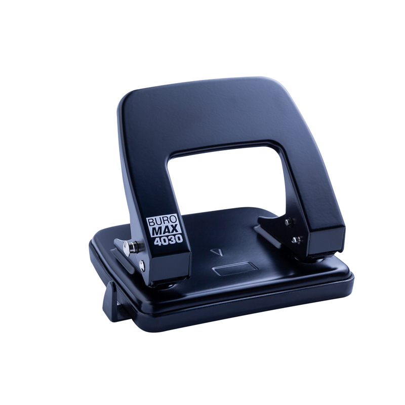 Корпус діркопробивача BUROMAX виготовлений із металу. Підошва оснащена знімним пластиковим контейнером для збору відходів висікання та висувною лінійкою з форматною шкалою, а це точний результат та рівні стоси підшитих документів.Металевий діркопробивач BUROMAX легко та швидко проб'є заявлену кількість аркушів.