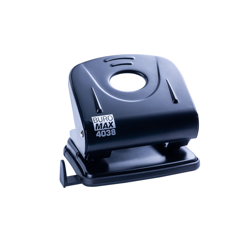 Корпус діркопробивача BUROMAX виготовлений із металу. Підошва оснащена знімним пластиковим контейнером для збору відходів висікання та висувною лінійкою з форматною шкалою, а це точний результат та рівні стоси підшитих документів.Металевий діркопробивач BUROMAX легко та швидко проб'є заявлену кількість аркушів.