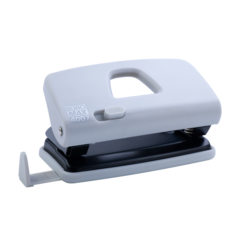 Корпус діркопробивача BUROMAX виготовлений із пластику. Підошва виконана з металу та оснащена знімним пластиковим контейнером для збирання відходів висікання та висувною лінійкою з форматною шкалою. Вбудований фіксатор закритого положення забезпечить зручне транспортування та зберігання.Пластиковий діркопробивач BUROMAX легко та швидко проб'є заявлену кількість аркушів.