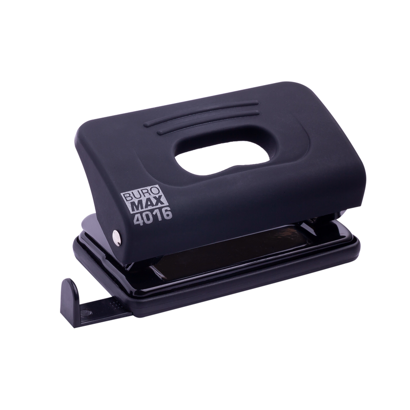 Корпус дірокола BUROMAX виготовлений із пластику з приємним прогумованим покриттям Rubber touch. Підошва виконана з металу та оснащена знімним пластиковим контейнером для збирання відходів висікання та висувною лінійкою з форматною шкалою.Пластиковий дирокол BUROMAX легко та швидко проб'є заявлену кількість аркушів.