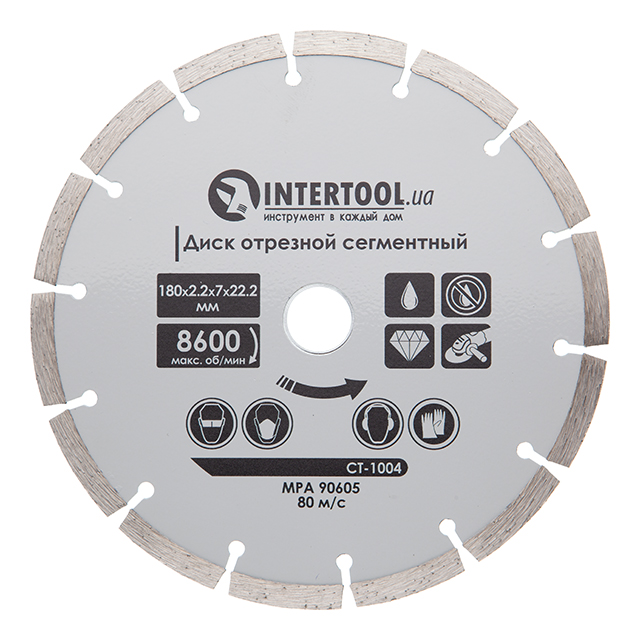 Опис Диск отрезной сегментний алмазний, 180 мм, 16-18% INTERTOOL CT-1004 код товару CT-1004