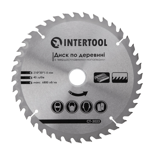 Опис Диск пильний по дереву з твердосплавними напайками 210x30x1,5 мм; 40 зубів INTERTOOL CT-3023 код товару CT-3023