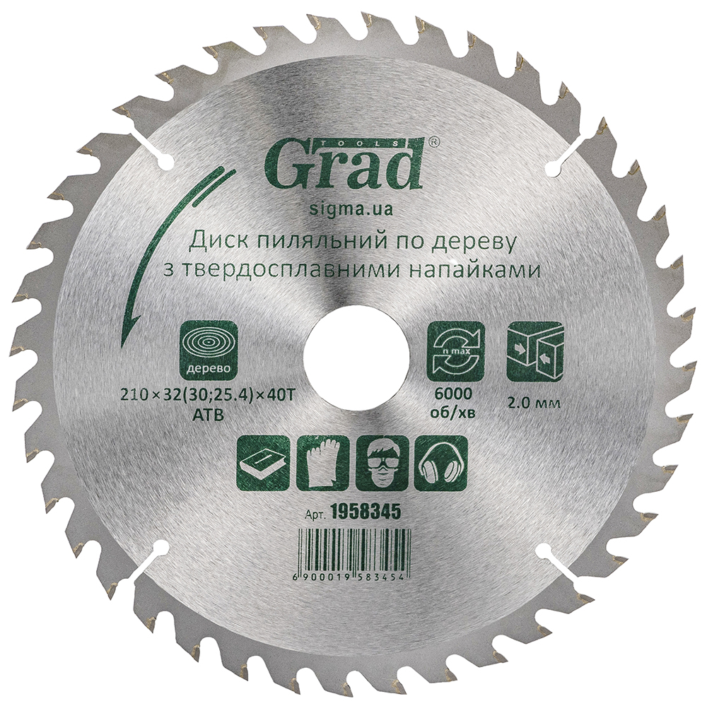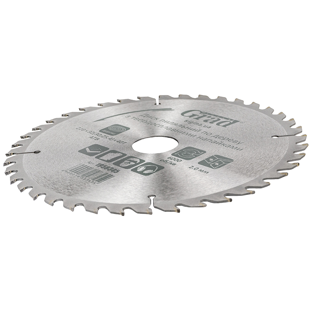 Опис Диск пилковий по дереву з твердосплавними напайками 210*32(30;25.4)*40T GRAD (1958345) код товару 1958345