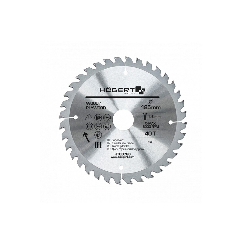 Характеристики Диск пиляльний по дереву 185 (HT6D780) код товару 5902801323300