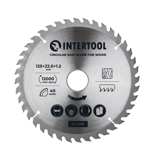 Характеристики Диск по деревині, з твердосплавними напайками, 125×22,2×1,2 мм, 40 зубів, 12000 об/хв код товару CT-3011