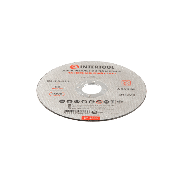 Характеристики Диск різальний по металу 125x2.0x22.2мм INTERTOOL CT-4009 код товару CT-4009