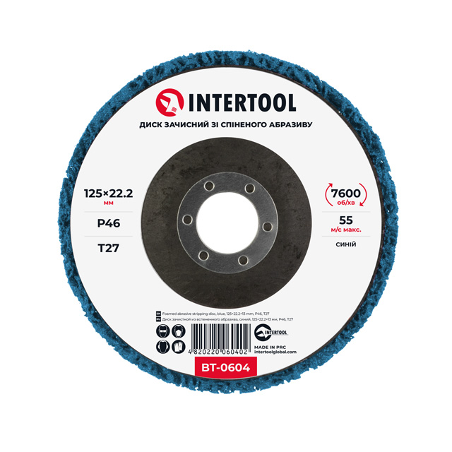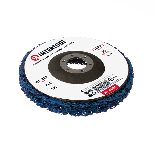 Опис Диск зачистний з пінного абразиву голубий 125*22,2*13 мм, P46, T27 INTERTOOL BT-0604 код товару BT-0604