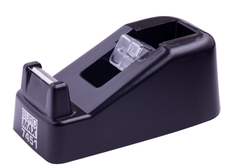 Опис Диспенсер для канцелярського скотчу (ширина до 18 мм), 122x60x50мм, пластиковий, чорний Пластик (Im-off) код товару BM.7451-01