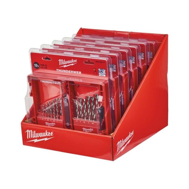 Опис Дисплей з 6 шт Наборів свердл по металу Milwaukee HSS-G THUNDERWEB (19 шт) код товару 4932352375