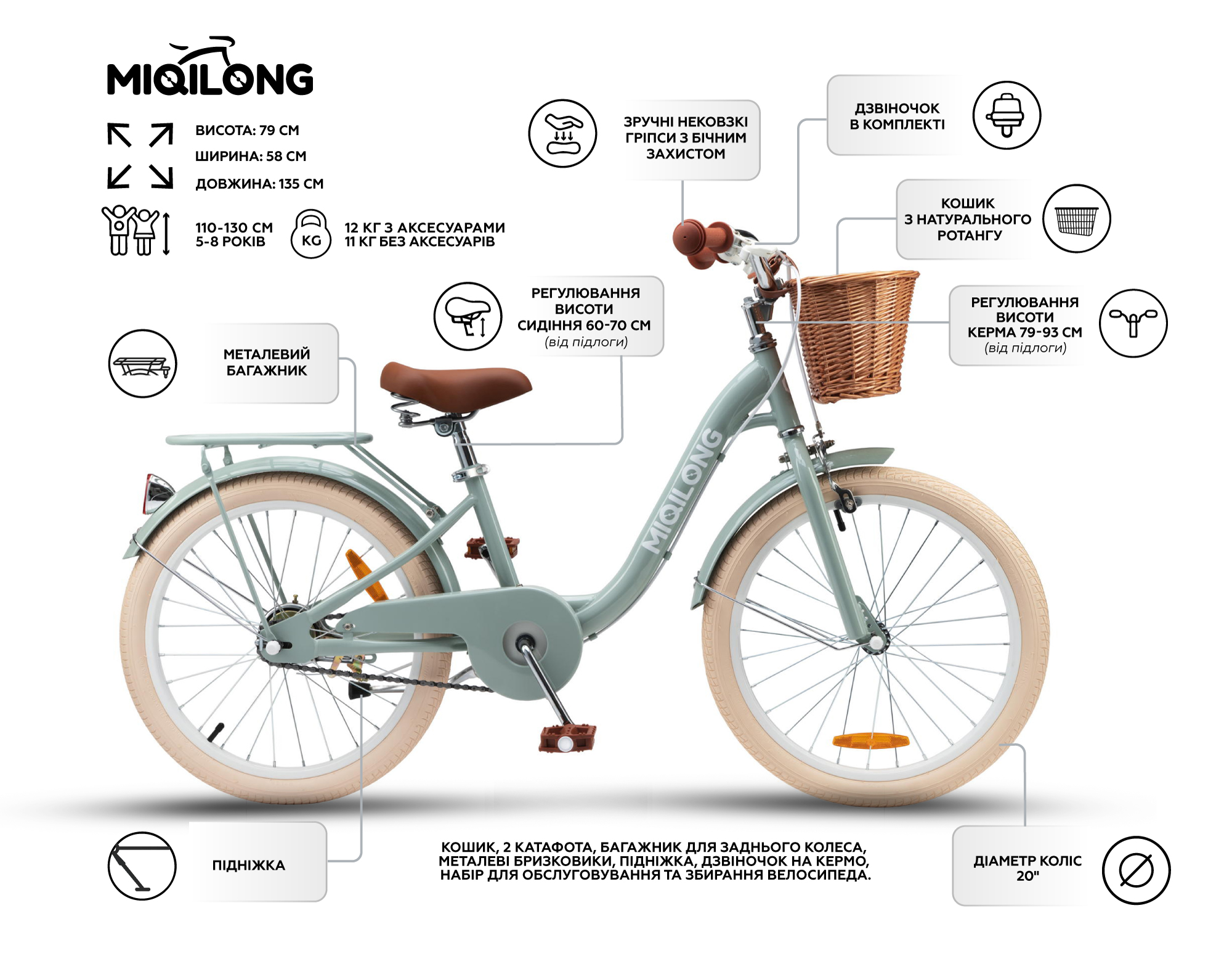 Характеристики Дитячий велосипед Miqilong LS 20" оливковий код товару RBB-LS20-OLIVE