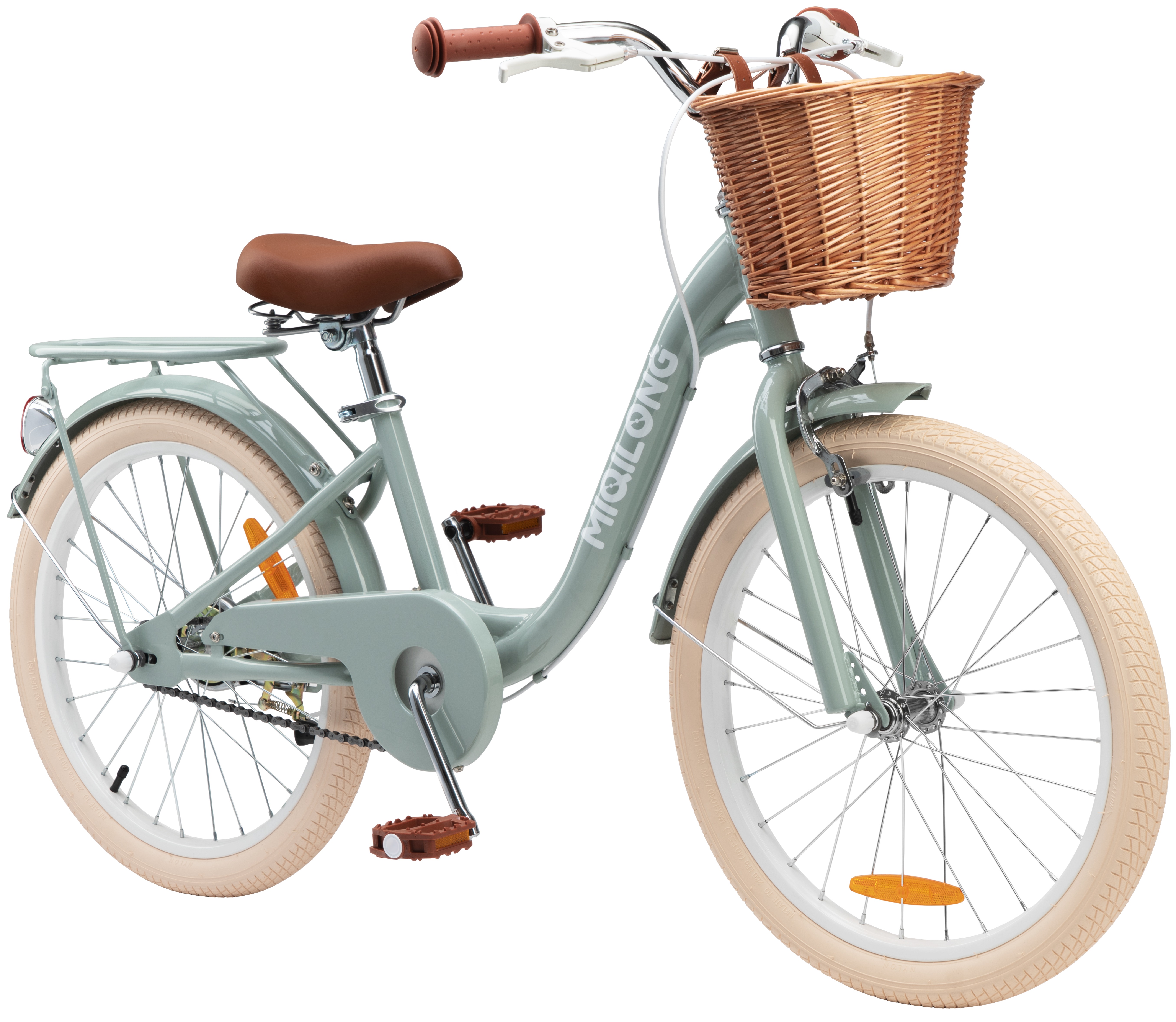 Велосипед для дітей Miqilong LS 20 - це втілення сучасного уявлення про ретро дизайн. Використання фарбування у стилі 50-х років ХХ століття та корзинки ручної роботи з натурального ротангу роблять дизайн велосипеда вишуканим та елегантним.