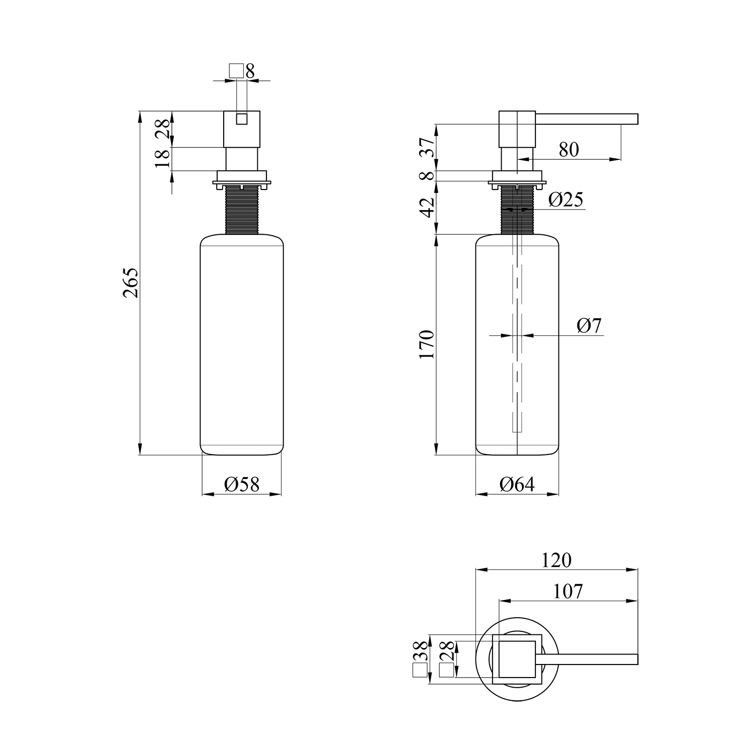 - Заправка милом або миючим засобом відбувається без відкручування ємності.