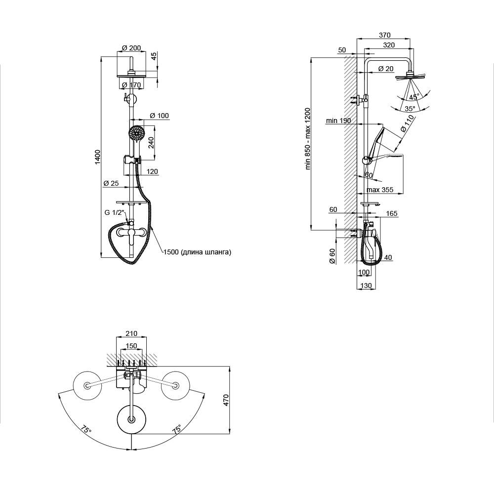 - Ручний душ 110. Верхній душ 200