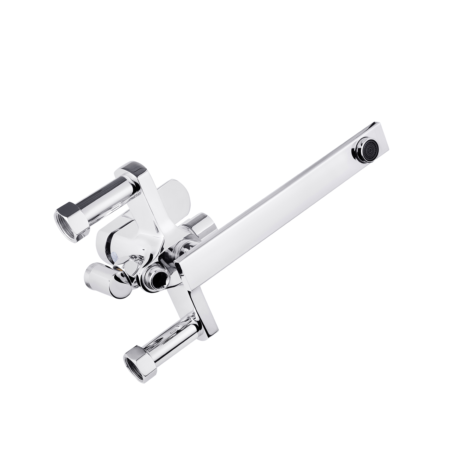 Змішувач, кронштейн для верхнього душу, лійка для верхнього душу, кронштейн для ручного душу, лійка для ручного душу, душовий шланг, душова стійка, кріплення, фум стрічка, інструкція.