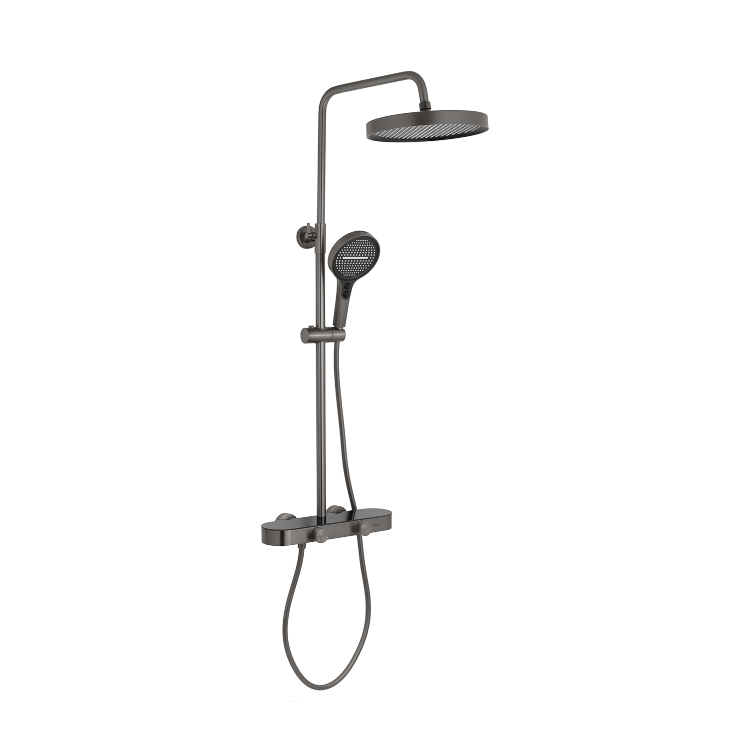 Душевая система Kroner KRP Makon - GRP0637 – это современное решение для тех, кто ценит комфорт, качество и стиль в ванной комнате. Она сочетает продуманную эргономику, функциональность и элегантный дизайн в графитовом цвете, который эффектно смотрится и гармонично вписывается в любой интерьер.