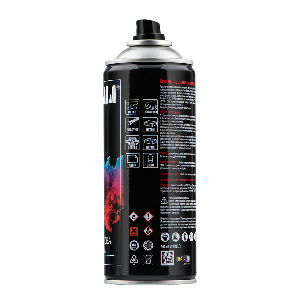 Характеристики Эмаль аэрозольная акриловая 400мл RAL 5002 ультрамариново-синий глянец SIGMA (2737141) код товару 2737141