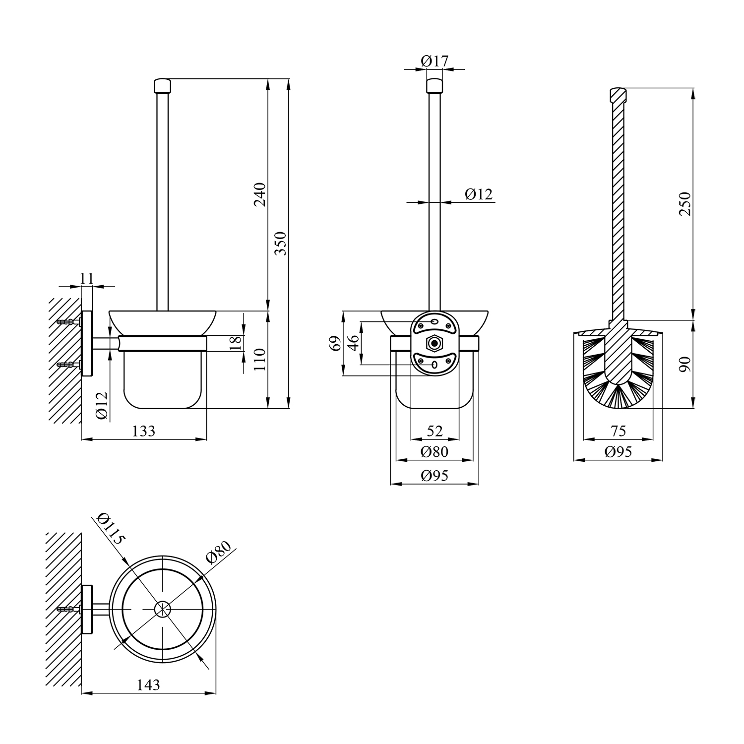 Опис Ершик для унітаза настінний Kroner KRM Elbe - ACG2910 код товару CV022870