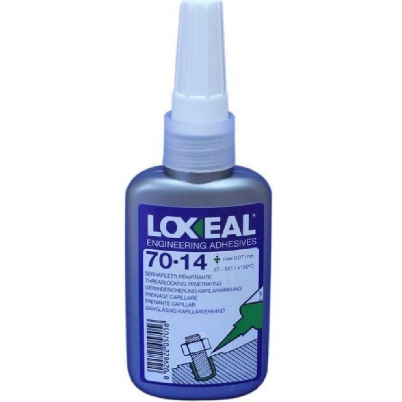 ОПИС:LOXEAL 70-14 – однокомпонентний клей високої міцності для кріплення та фіксації вже зібраних різьбових з'єднань, капілярний продукт. Має відмінну проникаючу здатність за рахунок дуже низької в'язкості, усуває пористість металевих поверхонь. Стійкий до тепла, корозії, вібрації, води, газу, нафти, вуглеводнів та інших хімічних речовин. Одночасно фіксує та герметизує різьблення.РЕКОМЕНДАЦІЇ ІЗ ЗАСТОСУВАННЯ:Для отримання найкращих результатів поверхні, що склеюються, повинні бути чистими і знежиреними. Продукт LOXEAL 70-14 (Локсеаль 70-14) наноситься на різьбову частину в кількості, достатній для заповнення різьбового зазору. Надмірно великі діаметри різьблення та різьбові зазори можуть негативно вплинути на міцність і швидкість полімеризації. У разі фіксатором заповнюють вузькі зазори до 0,017 мм. Продукт LOXEAL 70-14 (Локсеаль 70-14) не рекомендується наносити на поверхні з термопласту, оскільки можливе руйнування такого матеріалу. При необхідності такого застосування необхідно перевірити сумісність продукту з матеріалом поверхонь.