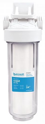 Характеристики Фільтр магістральний Ecosoft 10", прозора колба, підключення 3/4, з поліпропіленовим картриджем код товару FPV34ECO