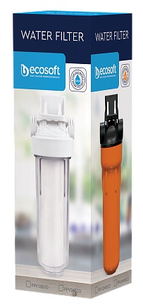 Опис Фільтр магістральний Ecosoft 10", прозора колба, підключення 3/4, з поліпропіленовим картриджем код товару FPV34ECO