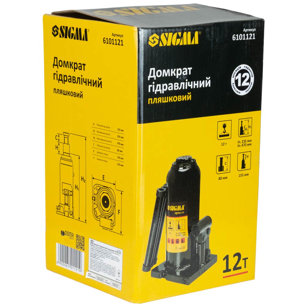 Опис Гідравлічний бутилковий домкрат 12т H 230-465мм SIGMA (6101121) код товару 2097