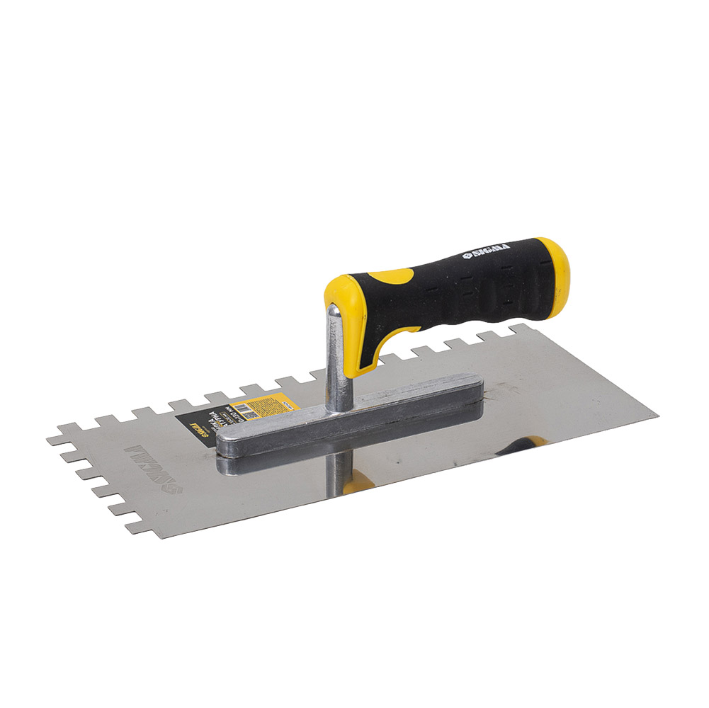 Гладилка SIGMA - ваш надійний помічник у штукатурних роботах. Вона забезпечує рівномірне нанесення матеріалу, а зубчаста структура дозволяє створювати ідеальну текстуру. Професійний інструмент для майстрів та аматорів. Не втрачайте можливість покращити якість своїх робіт!