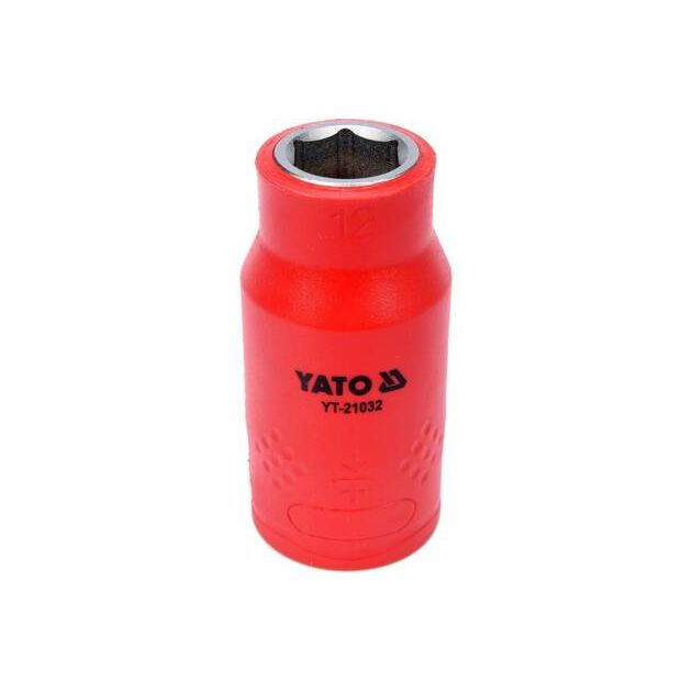 Опис Головка торцева діелектрична 6-гранна, квадрат 1/2, 12 мм, довжина 55 мм, ізольована YATO (YT-21032) код товару YT-21032