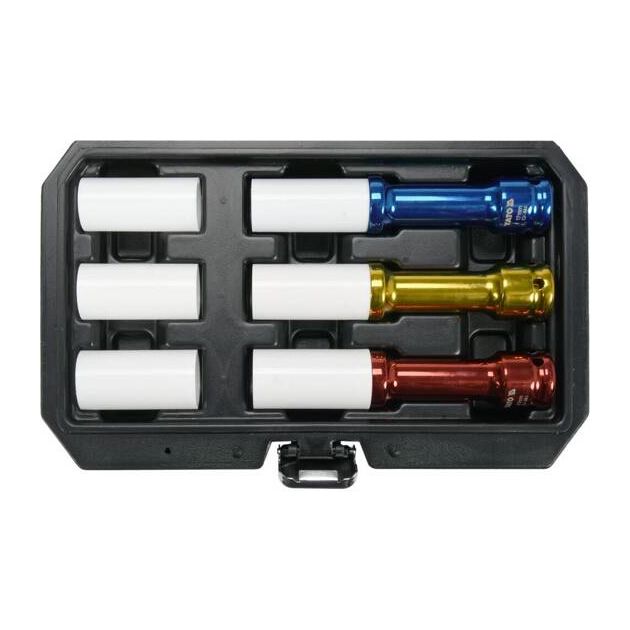 Опис Головки торцеві ударні 6-гр. для алюмінієвих дисків YATO квадрат 1/2, М 17, 19, 21 мм, l = 150 мм, 6 шт (YT-10563) код товару YT-10563