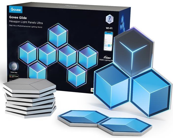 Опис Govee Набір настінних світильників H606A Glide Hexagon Light, 7, RGBIC, WI-FI/Bluetooth, білий код товару H606AC81