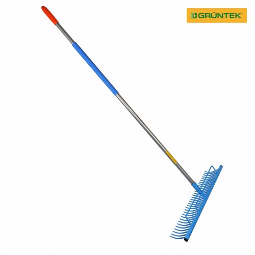 Грабли газонные GRUNTEK RR-600/140S 32 зубца со стальной ручкой – ручной инструмент для сгребания скошенной травы, удаления садового мусора на газонах и т.п. Поставляется с металлической ручкой 140 см.