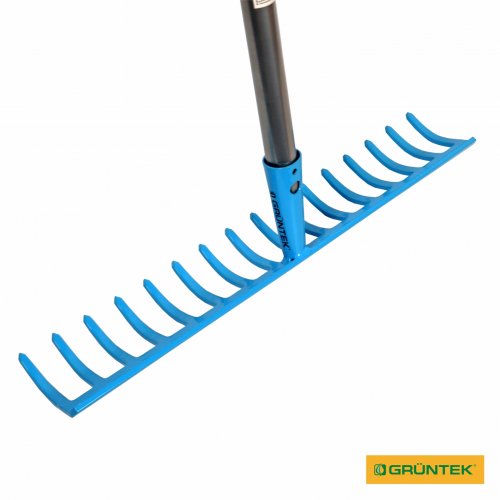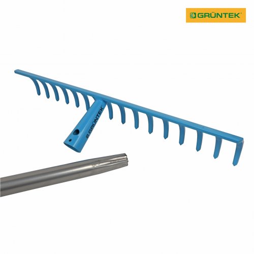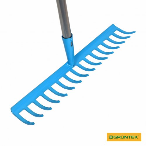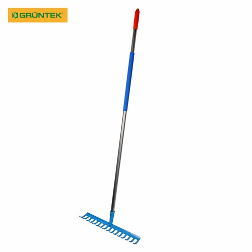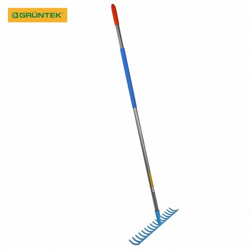 Грабли садовые GRUNTEK GR-450/140S 16 зубцов (со стальной ручкой) – ручной инструмент для уборки в саду, разбивания комьев грунта, сгребания скошенной травы и т.п. Поставляется с металлической ручкой длиной 140 см.