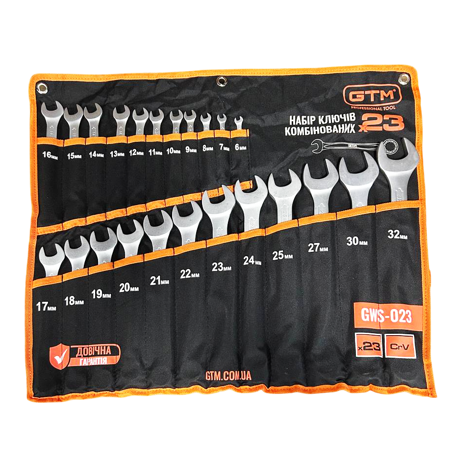 Характеристики GTM Набір ключів комб. 6-32мм 23од. чохол код товару GWS-023