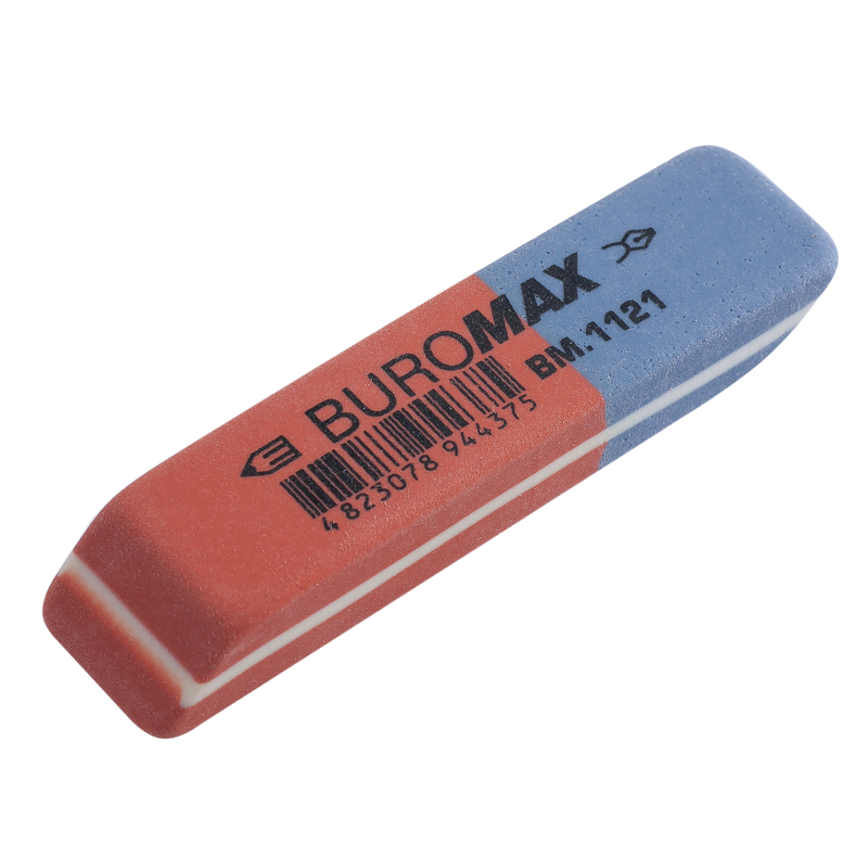 Характеристики Гумка подвійна з абразивною частиною L, 58x14x8 мм, синт.каучук, червоно-синя олівець. ручку. чорнила (Im-off) код товару BM.1121