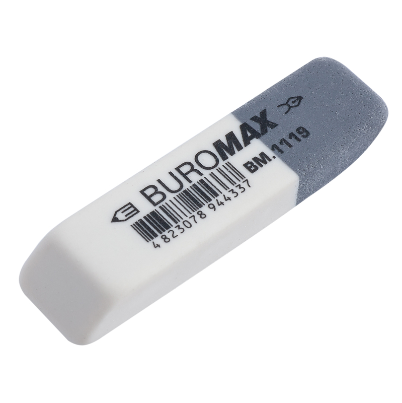 Характеристики Гумка подвійна з абразивною частиною M, 55x14x8 мм, синт.каучук, біло-сіра олівець. ручку. чорнила (Im-off) код товару BM.1119