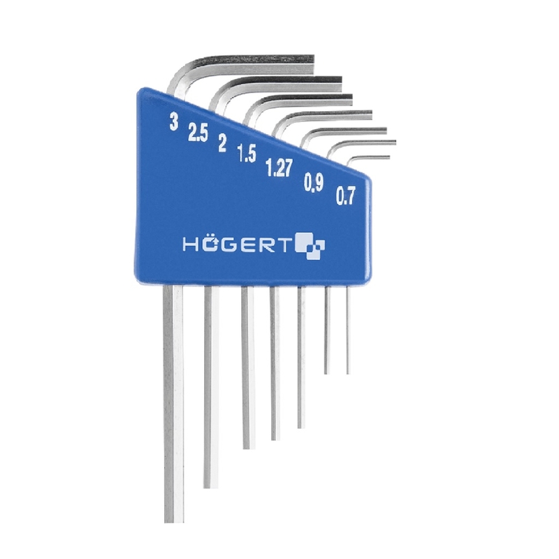 Опис Набір шестигранних ключів 7 шт., 0,71-3,0 мм HOEGERT HT1W800 код товару HT1W800